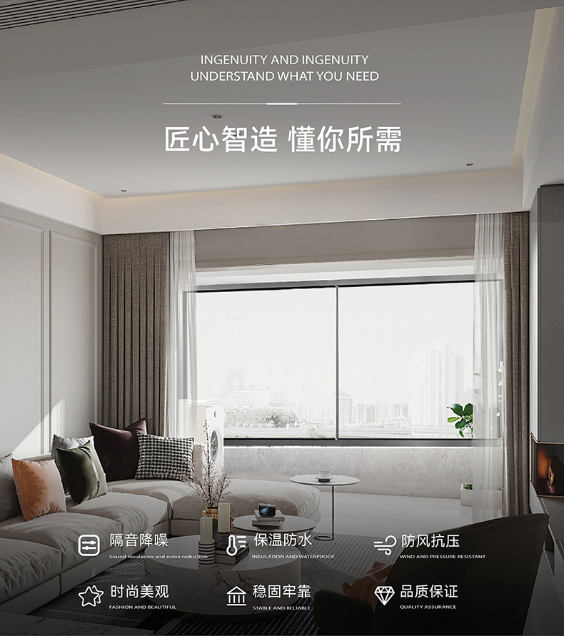 E格靜然120S推拉窗斷橋鋁合金隔斷封陽臺隔音隔熱門窗